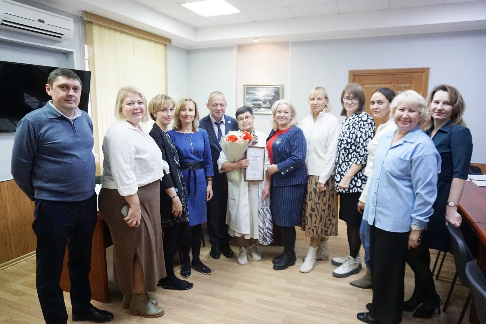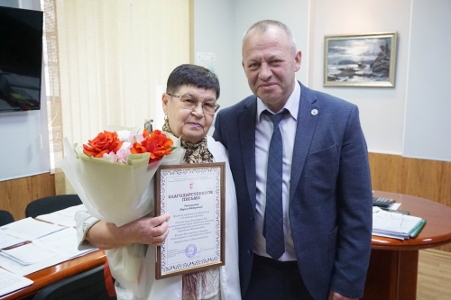 Главный врач Сергей Мерясев вручил имениннице благодарственное письмо и поздравил с юбилеем: