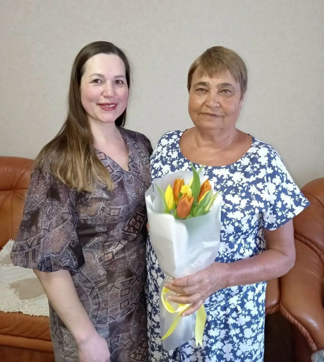 Лейля Камилевна вручила каждой яркий букет цветов и передала самые тёплые поздравления от главного врача больницы Сергея Мерясева, от себя лично и от всего профсоюзного комитета.