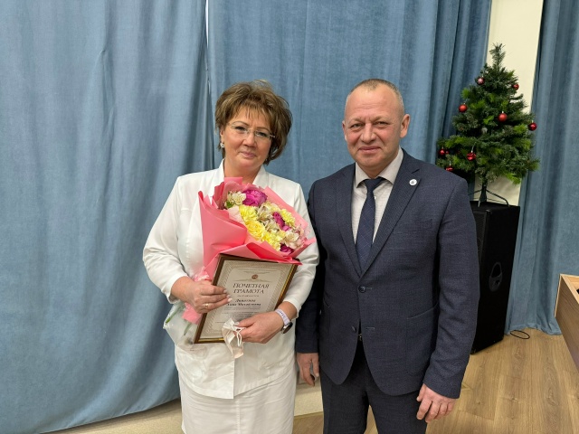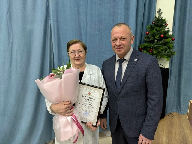 Главный врач Нижнекамской ЦРМБ Сергей Мерясев поздравил с юбилейными датами и вручил почётные грамоты коллегам, которые всю свою жизнь посвятили медицине.