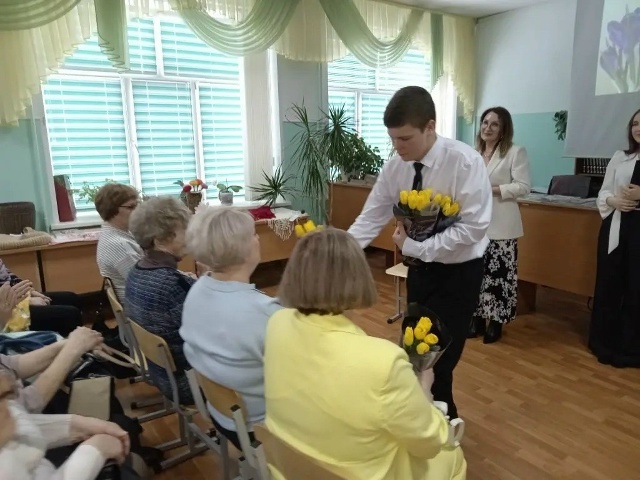 Отдельная благодарность студентам медколледжа: ребята были ведущими, играли на баяне и гитаре, пели для гостей и вручили каждой мастерице весенний букет тюльпанов.