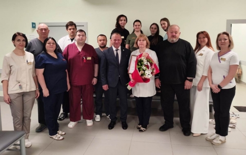 Главный врач Сергей Мерясев вручил Наталье Викторовне Почетную грамоту и от всей души поблагодарил ее за многолетний и добросовестный труд, а также весомый вклад в дело охраны здоровья населения.